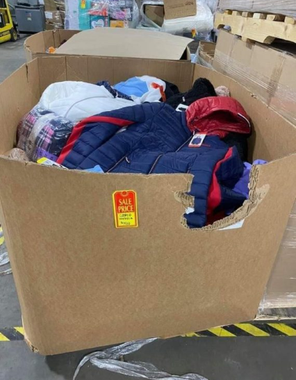 - Contents: jackets, sweaters, lined pants, shirts, double packs, sweaters, pajamas … (see photo)